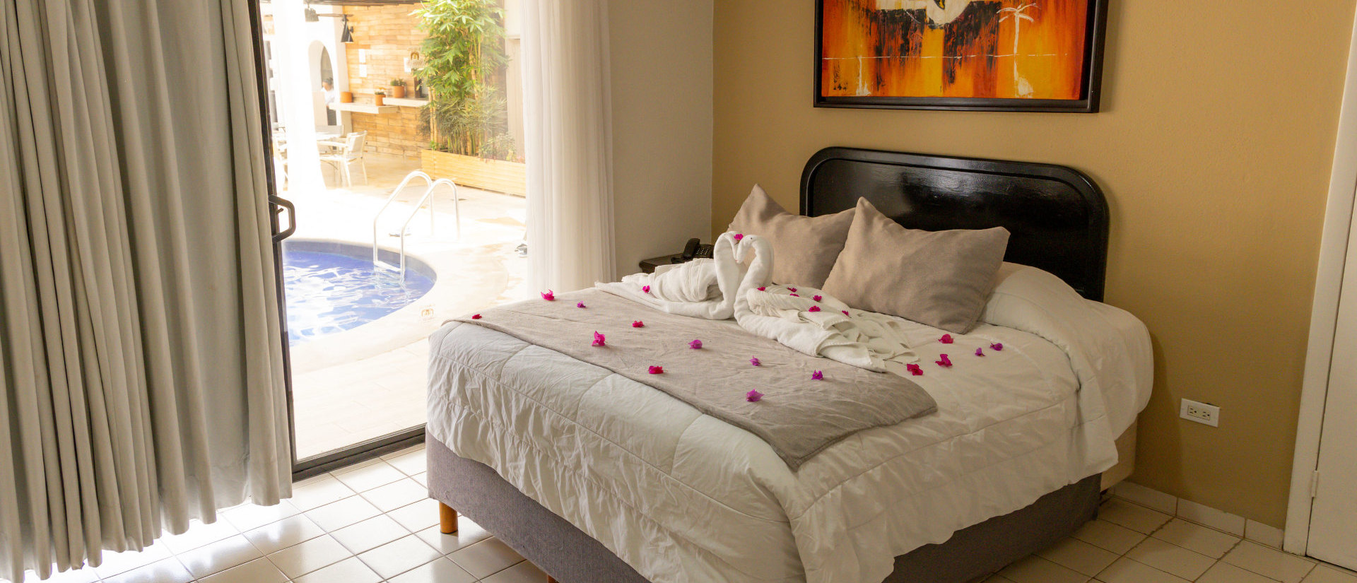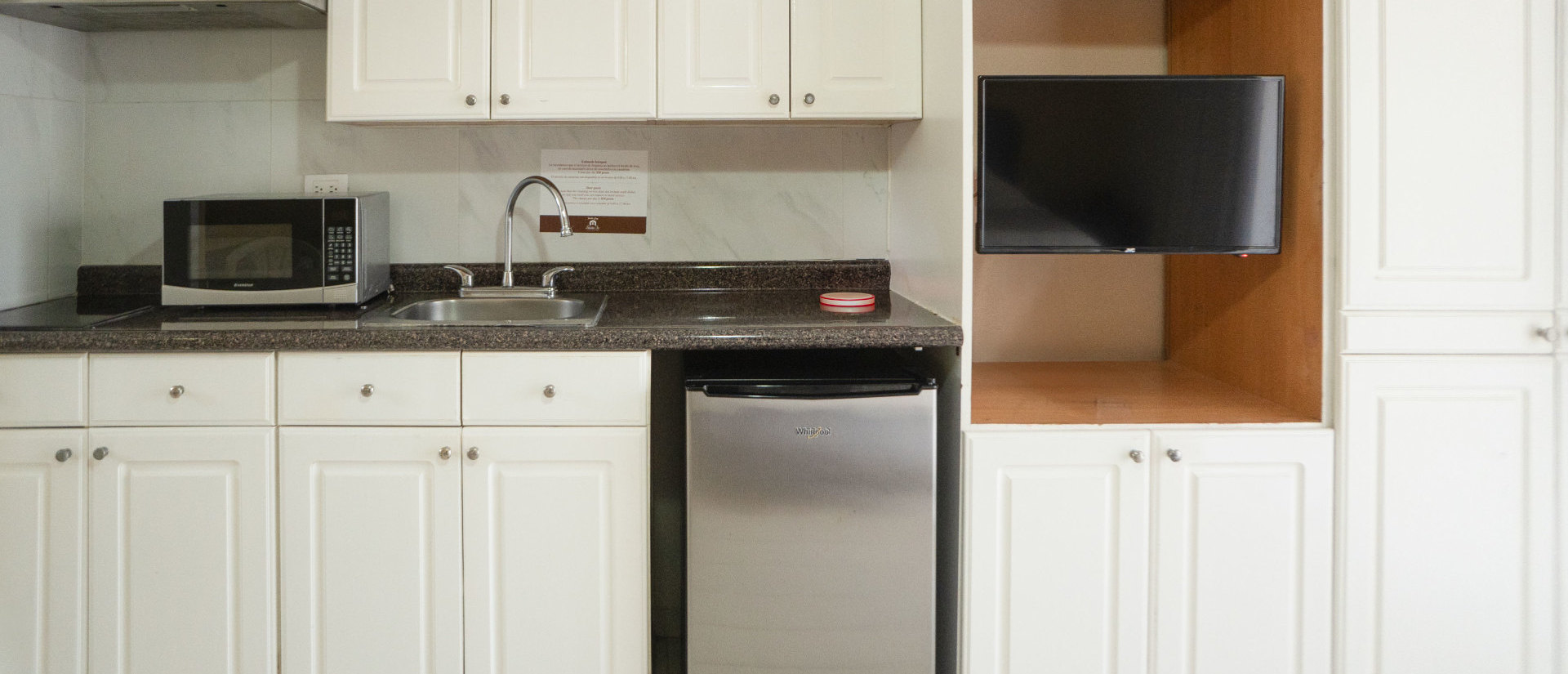 Our Studio offers air conditioning, while the room offers a beautiful view of the courtyard and pool. A fully equipped kitchenette offers all of the amenities to make your trip more pleasant. For business travelers, our rooms are equipped with wireless internet. The amenities in our Studios were designed exclusively for your security and comfort.